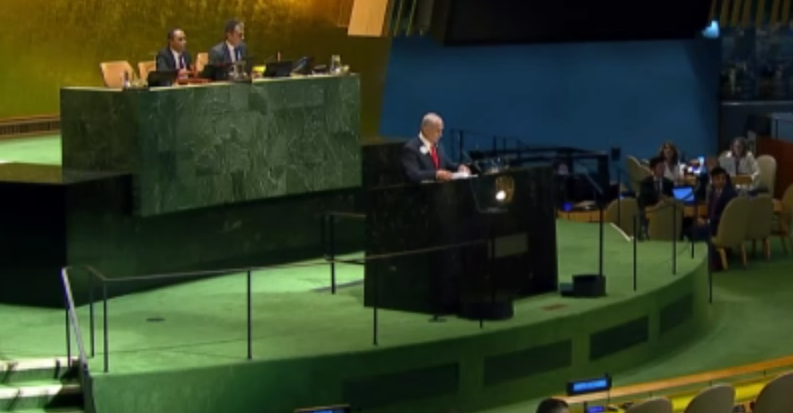 Siyonist terör devleti İsrail’in soykırımcı Başbakanı Binyamin Netanyahu, BM kürsüsünde yaptığı konuşma büyük tepkiyle karşılandı.