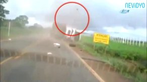 Brezilya’da kontrolü yitirilen kamyonet, bir anda taklalar atmaya başladı. Bu sırada yolcu koltuğundaki kadın da kamyonetin açık camından savrularak havada taklalar attı. Feci kazada sürücü hafif şekilde, taklalar atıp sert şekilde zemine çarpan kadın ise ağır şekilde yaralandı.
