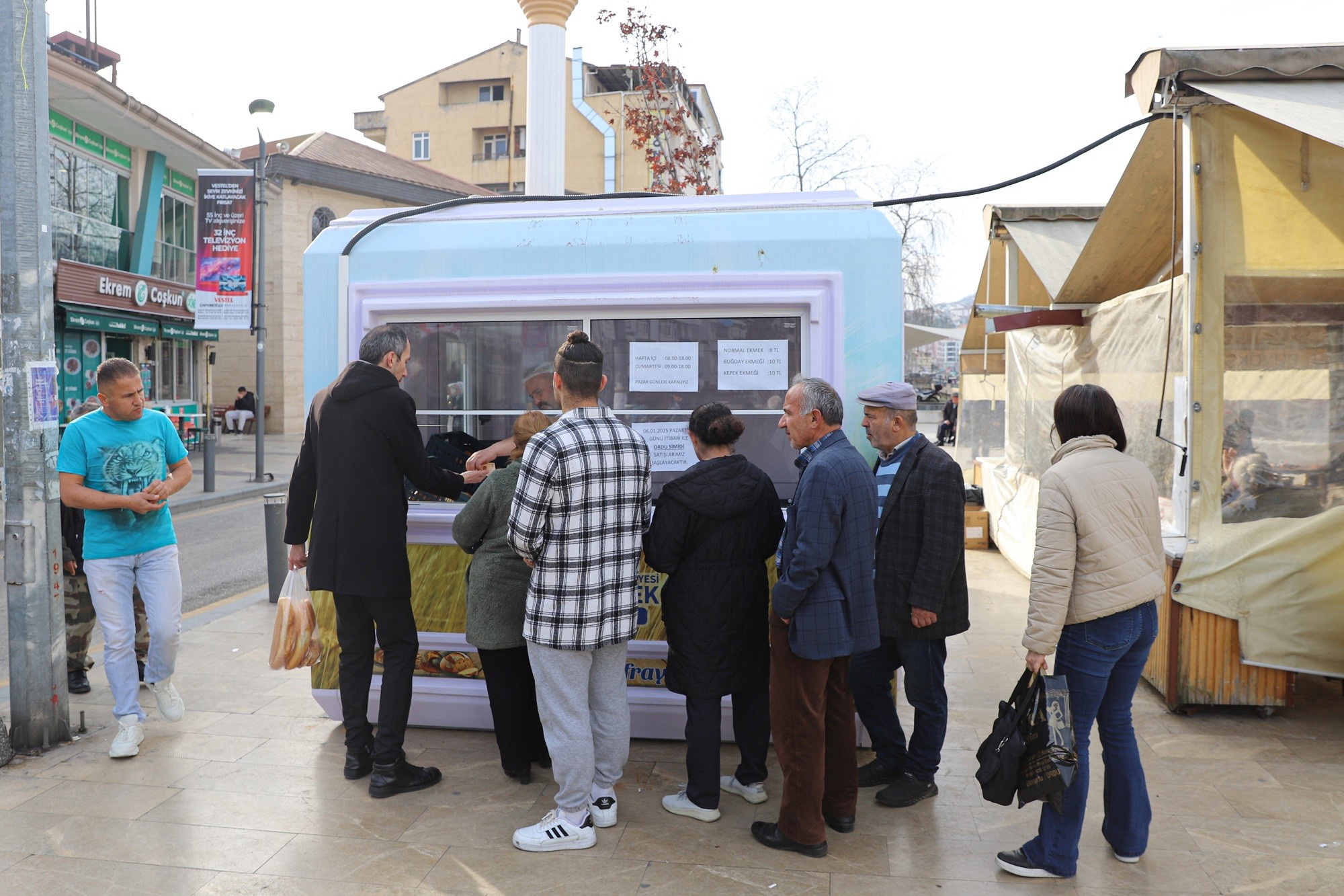 Ordu’da vatandaşların ekmek ihtiyacı Halk Ekmek Üretim Tesisi ile piyasa değerinin altında bir fiyat ile karşılanıyor. Ordu’da çeşitli noktalara yerleştirilen büfeler ile tesiste üretilen ekmekler vatandaşların satışına sunuluyor. Günlük ekmek ihtiyacını daha ucuza karşılamak isteyen vatandaşlar piyasada 12,5 lira olan ekmeği Halk Ekmek’te 8 liraya satın alabiliyor.