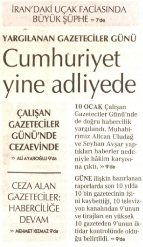 Yeni Akit Gazetesi Sorumlu Yazı İşleri Müdürü Ali İhsan Karahasanoğlu; kendisi, Akit TV ve Fatin Dağıstanlı hakkında suç duyurusunda bulunan Cumhuriyet’in, bugün 10 Ocak Çalışan Gazeteciler Günü’nü kutlamasına tepki gösterdi.