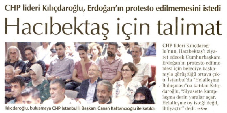 Haberde, Kılıçdaroğlu'nun Hacıbektaş Belediye Başkanı'nı aradığı ve "Erdoğan protesto edilmesin" diye talimat verdiği ileri sürüldü. Haber başlığında ise, "Hacıbektaş için talimat" ifadesine yer verildi.
