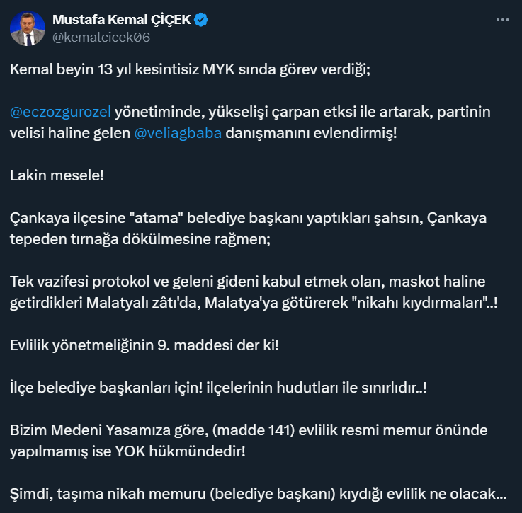 CHP'nin eski avukatı olarak tanınan Mustafa Kemal Çiçek'in gündeme getirdiği konu sosyal medyada gündem oldu. Çiçek'in konuya dair paylaşımı şöyle: