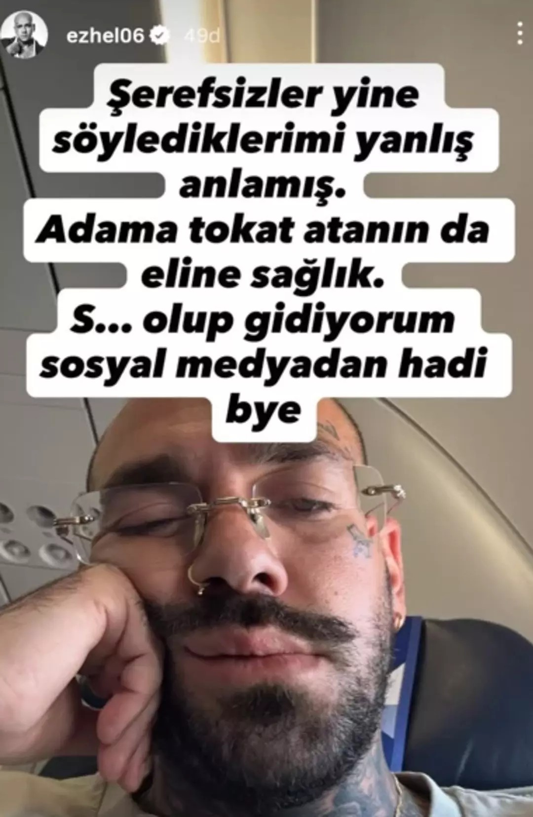 Ezhel cevabında "Şerefsizler yine söylediklerimi yanlış anlamış. Adama tokat atanın da eline sağlık. S... olup gidiyorum sosyal medyadan hadi bye" ifadelerini kullandı.