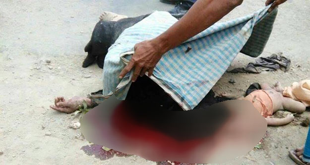 Arakan'da budist bir otobüs şoförü, yolda araç bekleyen bir kadını kucağında çocuk olmasına çarparak ezdi. Anne ve bebeği feci bir şekilde can verdi! Görgü tanıklarının verdiği bilgilere göre, otöbüs şoförünün kadını kasıtlı olarak ezdi ve ezdikten sonra aracını hiç durdurmayarak olay yerinden uzaklaştı.