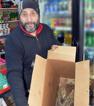 Sivas Kent merkezinde büfe işleten vatandaş, dükkanının önüne düşen kızıl şahini, yetkililere teslim etti.