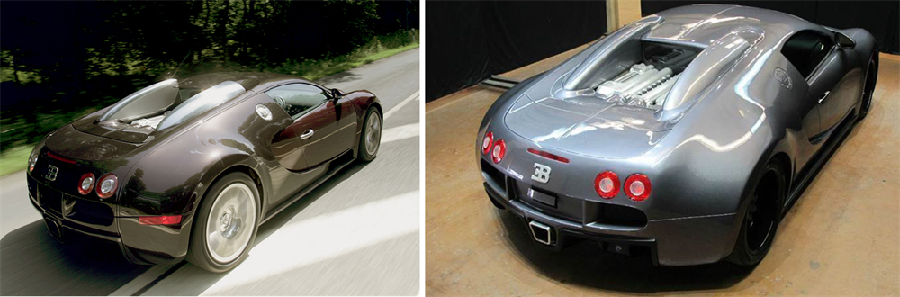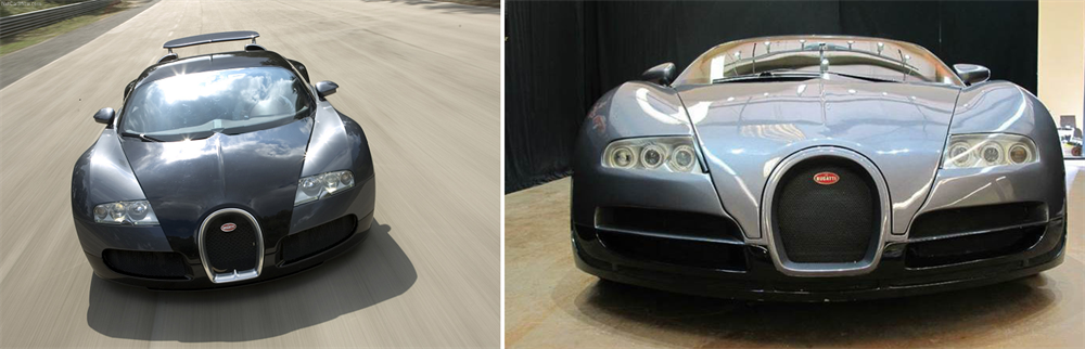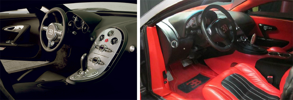 Orijinal Veyron ile replikasının (taklit) fotoğraflarını kıyaslayarak haberimize noktayı koyalım. Soldaki fotoğraflar orijinal, sağdakiler ise replika Bugatti Veyron.
