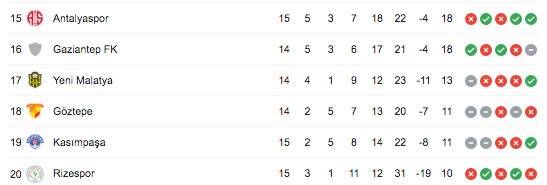 Süper Lig 15. hafta maç sonuçlarına göre lider koltuğunda yine Trabzonspor oturmakta. Trabzonspor’un 39 puanı olurken, Süper Lig 15. hafta Fenerbahçe puanı 27, Konyaspor puanı 26, Hayatspor puanı 26, ligde 5. sırada yer alan Başakşehir puanı ise 25.