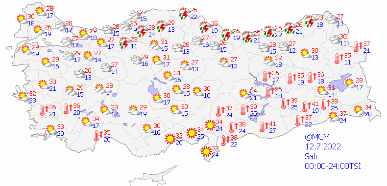 Meteoroloji Genel Müdürlüğü tarafından yapılan son değerlendirmelere göre: Yurdun kuzey kesimlerinin yer yer çok bulutlu, Batı Karadeniz'in iç kesimleri ve Sinop çevrelerinin, Orta ve Doğu Karadeniz kıyı illeri ile Ardahan çevrelerinin yerel sağanak ve gök gürültülü sağanak yağışlı, diğer yerlerin parçalı ve az bulutlu geçeceği tahmin ediliyor. Yağışların, Ordu, Giresun, Trabzon ve Rize çevrelerinde yer yer kuvvetli olması bekleniyor.