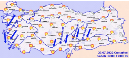 Bugün hava nasıl? Meteoroloji Genel Müdürlüğü (MGM) yurdumuzun dört bir yanında milyonlarca vatandaşımızı yakından ilgilendiren 23 Temmuz cumartesi hava durumu tahminini yayınladı. İşte başta büyük illerimiz İstanbul, Ankara ve İzmir olmak üzere 23 Temmuz 2022 Cumartesi Meteoroloji hava durumu...