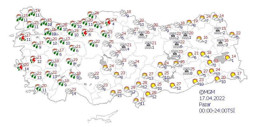 Pazar günü hava nasıl? Meteoroloji Genel Müdürlüğü 17 Nisan Pazar günü için bazı illere şiddetli yağış uyarısında bulundu. Peki, bugün İstanbul’da yağmur var mı? İstanbul güncel hava durumu