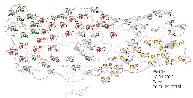 Bu nedenle sel, su baskını, yıldırım, ulaşımda aksamalar, yağış anında kuvvetli rüzgar gibi olumsuzluklara karşı dikkatli ve tedbirli olunması istendi.