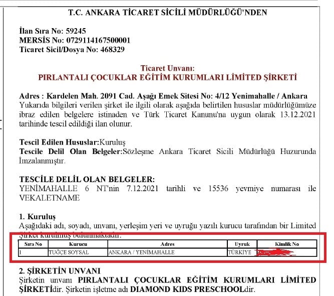 Polise verdiği ifadeye göre tamamı son 4 senede alınmış ve üzerine kayıtlı 9 daire ile kiraya verdiği 2 depoya sahip olduğu ifade edilen “köpeksever” Boyacı'nın, 13.12.2021 tarihinde başkent Ankara’da kurulan “Pırlantalı Çocuklar” isimli anaokulunu ise kız kardeşi Tuğçe Soysal’ın üzerine tescillediği iddia edildi.