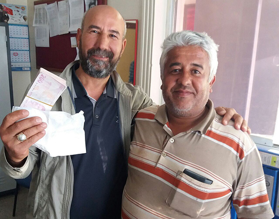 Gaziantep'in Nizip ilçesinde bir seyyar satıcı, bankanın önünde bulduğu 16 bin liranın emniyet aracılığıyla sahibine teslim edilmesini sağladı.