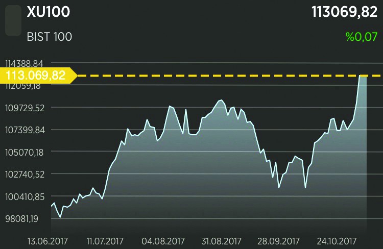 Grafikte göreceğiniz gibi 100 bin puandan başlayan yükseliş trendi, 113 bin puana kadar devam etti.