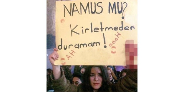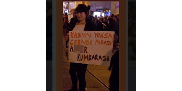 Ahlaksızlıkta adeta birbirleriyle yarışan kadın görünümlü teröristler, aile kurumuna ve ahlaka duydukları kini açtıkları pankartlarla kustu.