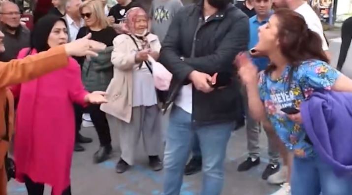 Bu sözlerin ardından muhalif bir kadın ise 'İnadına Erdoğan, inadına Soylu' diyen kadına 'cahil' diyerek hakarette bulundu. Başörtülü kadının üzerine yürüyerek 'Kendini geliştir' diyen saldırgan kadın, çevredeki laikçilerin alkışlarıyla da gaza geldi.