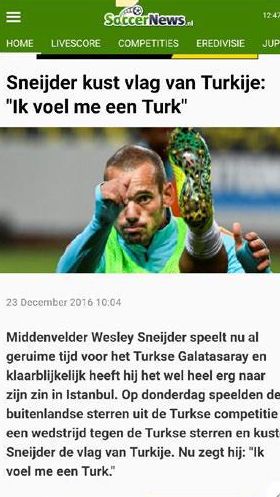 Galatasaraylı Wesley Sneijder'in maç öncesi "4 yıldır buradayım. Artık kendimi Türk gibi hissediyorum" diye konuşması Hollanda basınında da geniş yer buldu. Gazete, televizyon ve internet siteleri Sneijder'in sözlerini manşetten duyurdu.