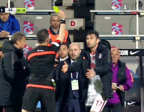 Galatasaray'ın Trabzonspor'a konuk olduğu karşılaşmanın 66. dakikasında yerini Goran Pandev'e bırakan Burak Yılmaz, sarı kırmızılıların beraberlik golünün ardından tribünlere yaptığı hareketler nedeniyle sarı kart gördü.
