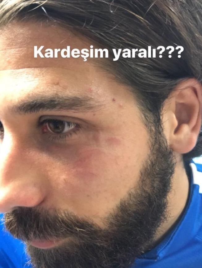 Olcay'ın yüzüne aldığı darbeyi takipçilerine gösteren Burak paylaşımına, "Kardeşim yaralı" notunu düştü.