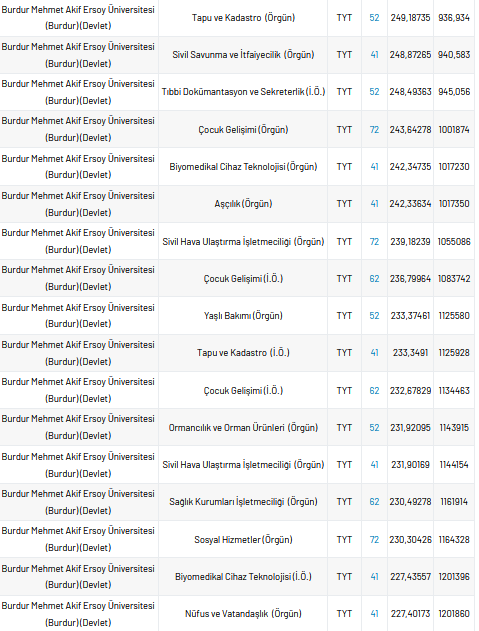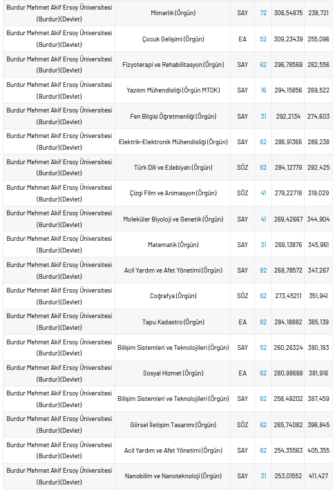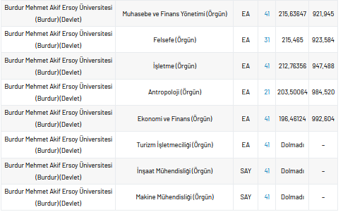 Burdur Mehmet Akif Ersoy Üniversitesi 2021 taban puanları ve yüzdelik dilimleri nelerdir?