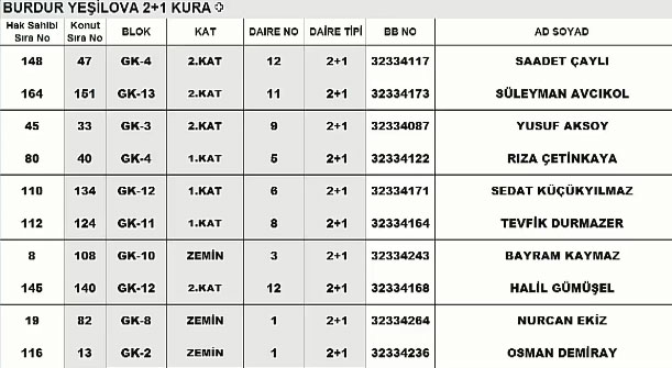 TOKİ Burdur Yeşilova sonuçları: Burdur Yeşilova konut kura sonuçları başvuru yapan hak sahipleri tarafından merak ediliyor. Yeşilova TOKİ 2+1 ve 3+1 konutlar için hak sahipleri çekilen koru sonucu neticesinde belli oldu. TOKİ Burdur Yeşilova kura çekiliş sonuçları isim listesi başvuruda bulunanlar tarafından merak ediliyor. İşte Burdur Yeşilova TOKİ sonuçları isim listesi.
