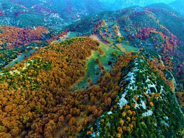 Burdur'un Altınyayla ilçesindeki meşe, çınar, sedir, ardıç, kızılçam ve karaçam ağaçlarıyla kaplı Karanlıkdere Kanyonu Tabiat Parkı sonbaharın güzelliğini yansıtıyor.