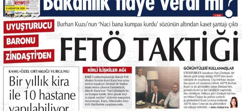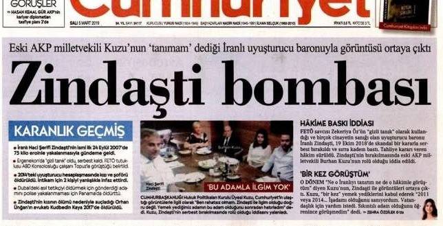 Daha önceki haberi yapan muhabir, bu kez de “Uyuşturucu baronu Zindaşti’den FETÖ taktiği” başlığı ile Cumhuriyet gazetesinde yeni bir habere imza attı. Haberde, Burhan Kuzu’ya kumpas kurularak santaj yapıldığı aktarıldı.