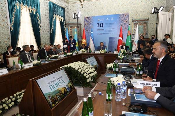 Bursa Büyükşehir Belediye Başkanı Alinur Aktaş daha sonra TÜRKSOY 38. Dönem Toplantısı’nda daimi üyelere Bursa hakkında sunum yaptı. Bursa’nın gönül coğrafyamızla köprü olmuş ve olmaya devam eden Türk medeniyetinin kadim şehirlerinden olduğunu söyleyen Başkan Alinur Aktaş, bugüne kadar ata sporları, sergiler, TÜRKSOY kültür sanat faaliyetleri, sempozyum ve yayınlar, Türk dünyası müzeler buluşması gibi birçok faaliyet sayesinde hem TÜRKSOY’la işbirliği yaptıklarını hem de Türk Dünyası’na yönelik faaliyetlere ağırlık verdiklerini belirtti. Bu faaliyetleri arttırarak devam ettireceklerini ifade eden Başkan Aktaş, “Bugün ‘2022 Türk Dünyası Kültür Başkenti’ adayı olarak buradayız. 2022 yılı Türk dünyası ve şehrimiz için önem arz eden yıl dönümleri ve etkinliklerin Bursa’da bir araya geldiği bir yıl. Bursalı bir Türk mutasavvıf olan, ziyaretgâhı şehrimizde bulunan, tarihî Ulu Cami’nin ilk imamı ve birçok dile tercüme edilen ilk Türkçe Mevlid-i Şerif’in yazarı Süleyman Çelebi’nin vefatının 600. yılı. Bursa’nın düşman işgalinden kurtuluşunun 100. yılı. Ayrıca bu yıl şehrimiz, zanaat ve halk sanatları alanında Unesco Yaratıcı Şehirler arasına seçildi. Ve 4. Dünya Göçebe Oyunları bu yıl şehrimizde, adeta tarih kokan güzel ilçemiz İznik’te düzenleniyor. Böylesi anlamlı bir yılda “Türk Dünyası Kültür Başkenti” olarak gerçekleştireceğimiz proje ve faaliyetlerimizle Türk Dünyası’nın gönül bağlarının güçlendirilmesi, kültürel mirasın yaşatılması, siyasi ve iktisadi birliğin geliştirilmesi hususunda Türk Dünyası’na katkı sunmaya devam etmek arzusundayız” dedi.