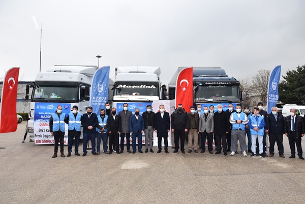 Konuşmaların ardından erzak kolileriyle dolu 3 TIR, dualarla Ağrı, Muş ve Bitlis’e uğurlandı.