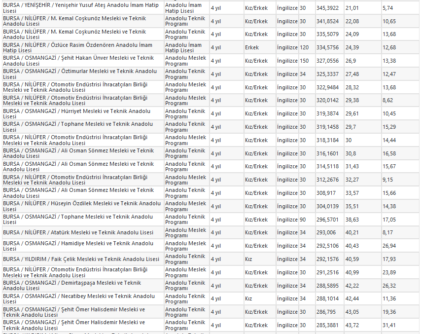 Bursa liseleri taban puanı 2021 Bursa liseleri başarı sıralaması |Bursa liseleri kontenjanları