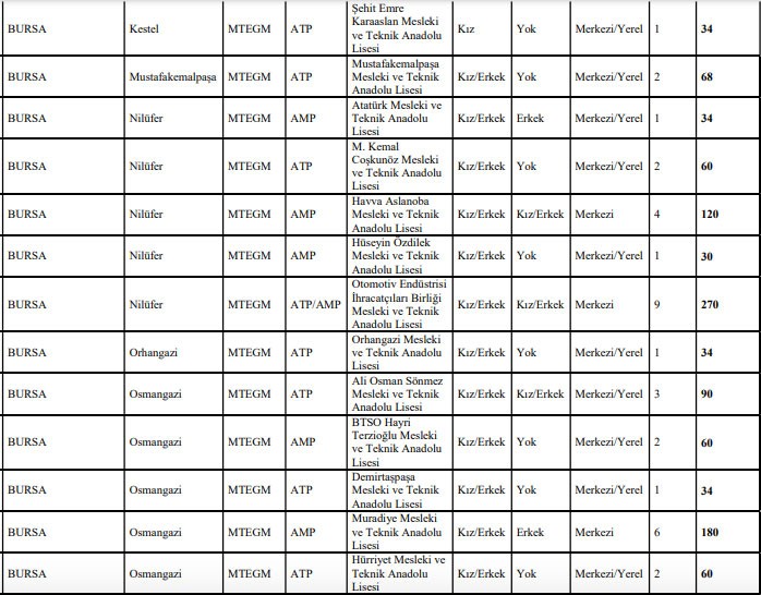Bursa'da lise taban puanları, yüzdelik dilimleri, kontenjanları nedir? Milli Eğitim Bakanlığı (MEB) tarafından yapılan merkezi sınav yani LGS sınavı 6 Haziran 2021 Pazar günü yapılacak. Milli Eğitim Bakanlığı LGS 2021 başvuru tarihleri henüz açıklamadı. Geçtiğimiz yıl LGS başvuruları otomatik olarak yapılmıştı. LGS sınavına hazırlanan öğrenciler liselerin taban puanları, yüzdelik dilimleri ve kontenjanlarını araştırıyor. Milli Eğitim Bakanlığı Merkezî Sınavla Öğrenci Alacak Fen Liseleri, Sosyal Bilimler Liseleri, Mesleki ve Teknik Anadolu Liselerinin Anadolu Teknik Programları ve Özel Program ve Proje Uygulayan Ortaöğretim Kurumları kontenjanlarını açıkladı. İşte Adana liseleri kontenjanları.
