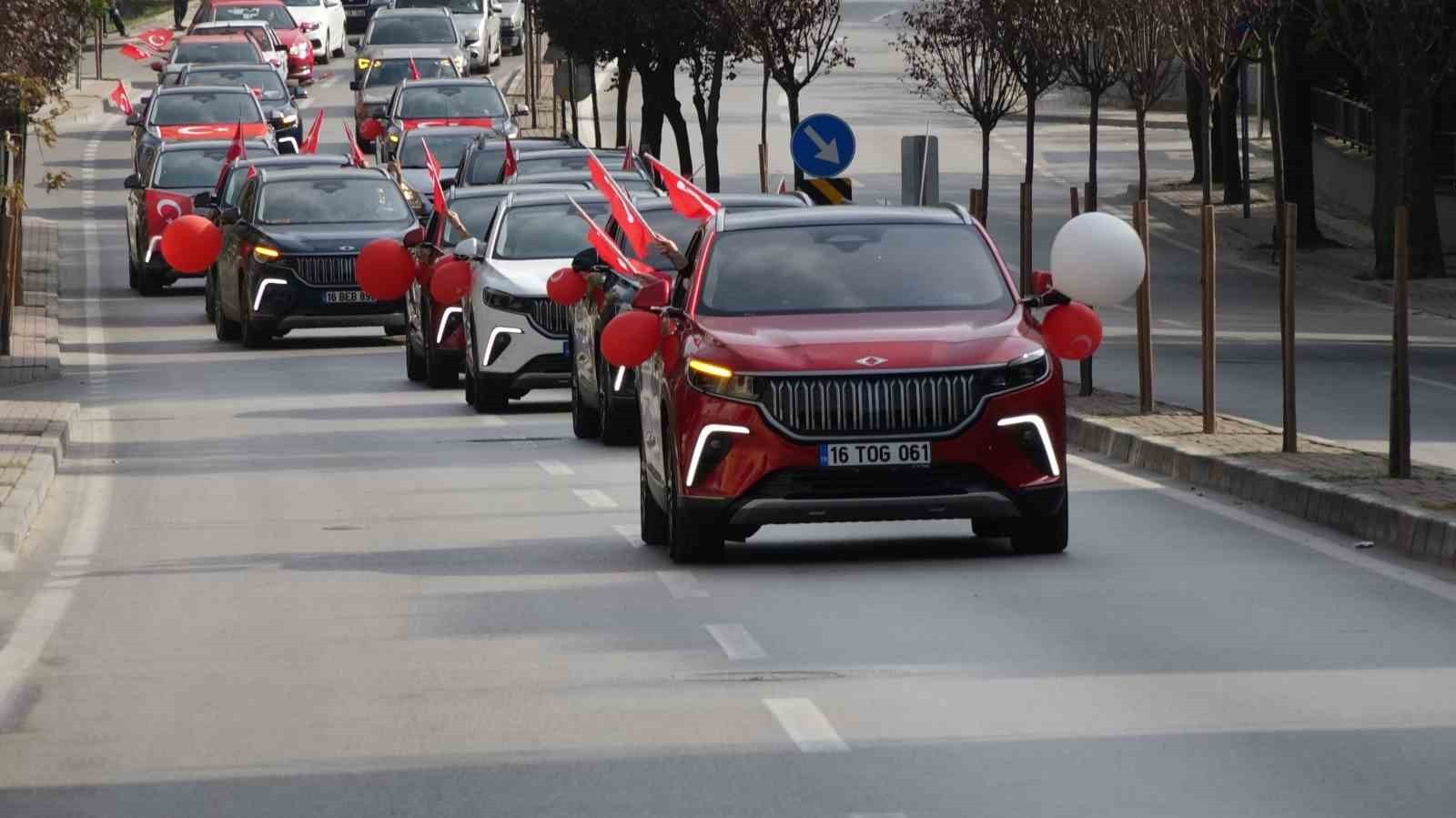 Bursa’da bir araya gelen Togg kullanıcıları, Cumhuriyet’in 100. yılını, oluşturdukları konvoyla doyasıya kutladı.