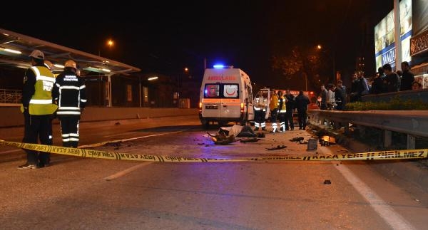 Bursa'da aşırı hız ve hatalı sollama nedeniyle metro istasyonunun duvarına çarpan otomobilde 1 kişi öldü, 3 kişi de yaralandı.