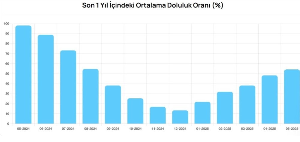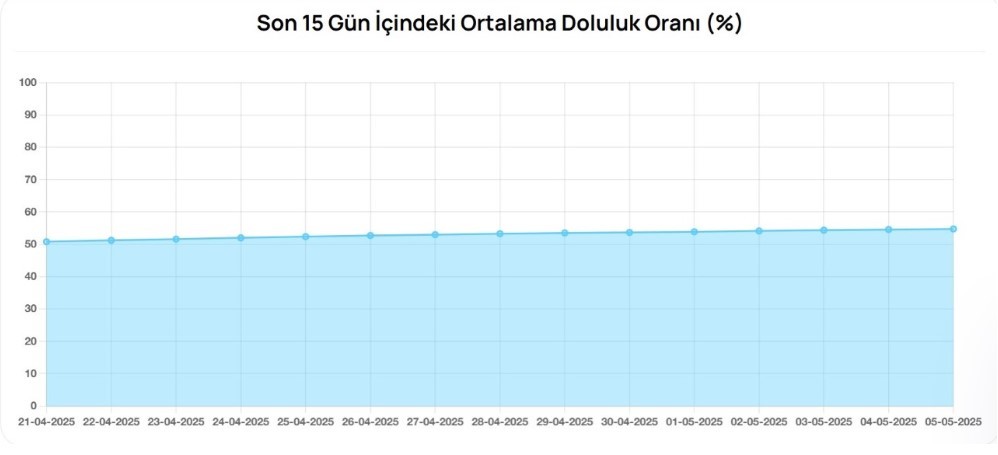 Şehrin içme suyu ihtiyacının karşılandığı barajların doluluk oranı son 15 günde yaklaşık yüzde 4 yükselse de geçen seneki oranların çok altında kaldı. Geçen sene Mayıs ayında iki barajın doluluk oranı ortalama yüzde 98.2 iken bu sene 5 Mayıs itibariyle barajlarda ortalama doluluk oranı yüzde 54.32’ü gösteriyor.