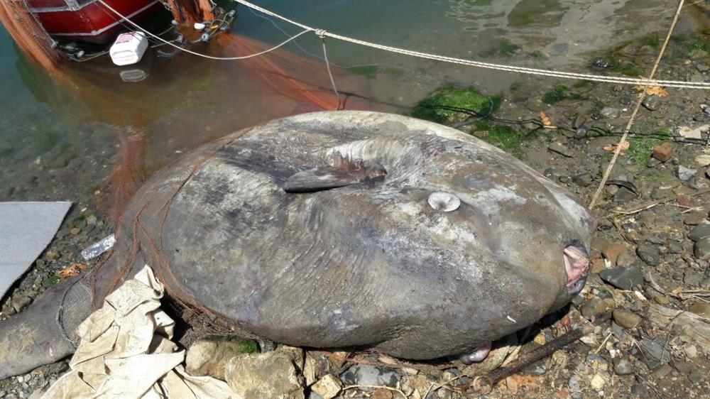 Büyükkumla Mahallesi kıyılarında avlanan Mustafa Emiroğlu, Hüseyin Özen ve Cevdet Samsun adlı balıkçıların ağına ay veya güneş balığı olarak adlandırılan dev balık takıldı. Güçlükle sahile tekneye çıkarılan balık daha sonra deniz kıyısına getirildi. Çevredekiler ilk kez gördükleri balığı meraklı gözlerle izlerken, bir bölümü de selfie çekti.