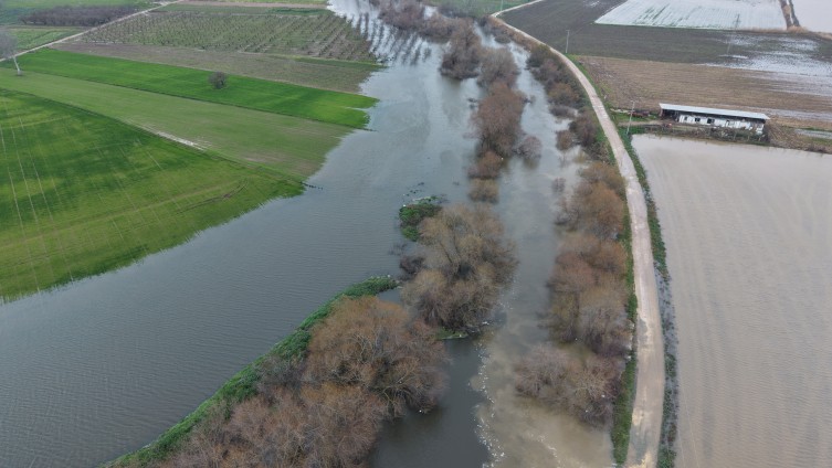 Karacabey’de etkili olan şiddetli yağışlar, bölgenin en önemli su tahliye damarı olan Çapraz Çayı’nı taşırdı. Uluabat Gölü’ndeki su seviyesinin yükselmesiyle denize su taşıma kapasitesi dolan çay, çevresindeki 7 mahalleyi sular altında bıraktı. Taşlık, Runguçpaşa, Canbalı, Yolağzı, Gönü ve Harmanlı mahallelerinde etkili olan taşkın; ekili tarım arazilerinden meralara kadar yaklaşık 20 bin dekarlık bir alanı dev bir su birikintisine dönüştürdü.