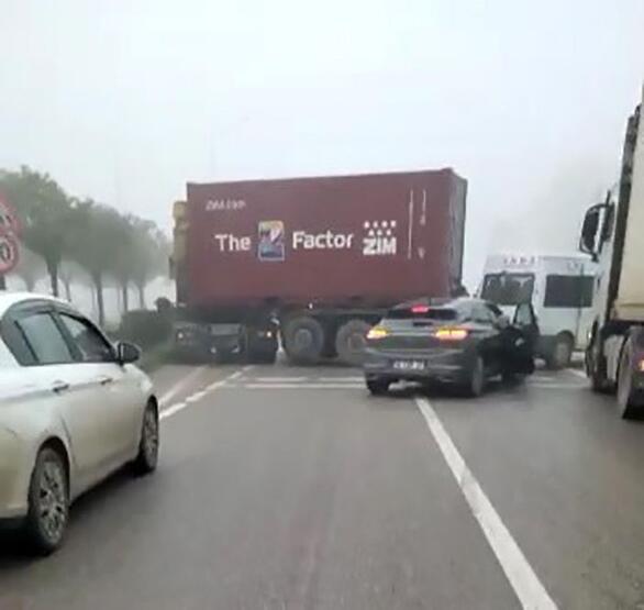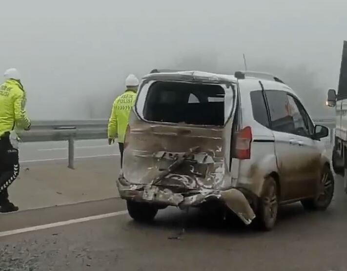 Karacabey ilçesi yakınlarında meyve yüklü bir kamyonet sisin de etkisiyla önündeki TIR'a arkadan çarptı. Araç içindeki yaralılara müdahale edilirken, arkadan gelen araçlar birbirine çarptı.