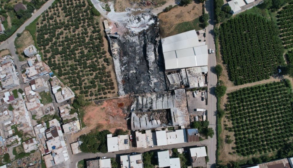Gece boyu süren soğutma çalışmalarının ardından fabrika sahipleri yangın bölgesine gelerek acı tabloyu gördü. Bölge havadan dron ile görüntülendi. Görüntüler yangının büyüklüğünü de bir kez daha gözler önüne serdi. 5 bin dönümülük fabrika enkazı şavaş alanlarını aratmadı.