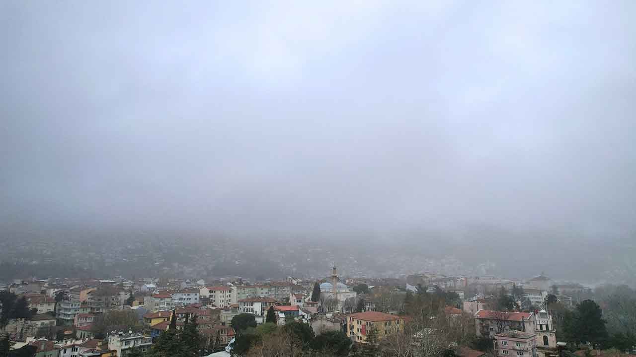 Bursa’nın merkez ilçesi Osmangazi ve çevresinde sabahın ilk ışıklarıyla birlikte etkili olan yoğun sis, hayatı durma noktasına getirdi. Kentin yüksek kesimlerinden bir çarşaf gibi süzülerek şehir merkezine inen sis tabakası, Bursa’nın tarihi silüetini adeta haritadan sildi.