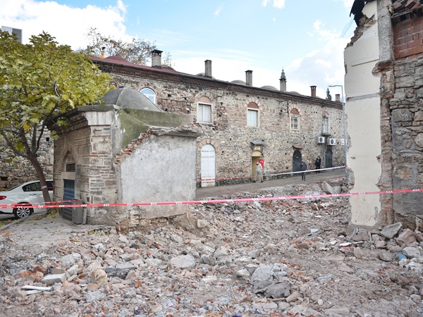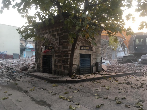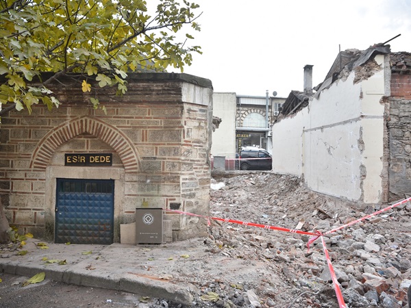 Bursa Büyükşehir Belediyesi’nin, kentin geleceğine damga vuracak Tarihi Çarşı ve Hanlar Bölgesi Çarşıbaşı Kentsel Tasarım projesinde Kızılay, Merkez Bankası ve İşkur binalarının ardından, Pirinç Han’ın arkasında bulunan yaklaşık 350 yıllık Esir Dede Türbesi etrafındaki 15 dükkanın da yıkımı tamamlandı.