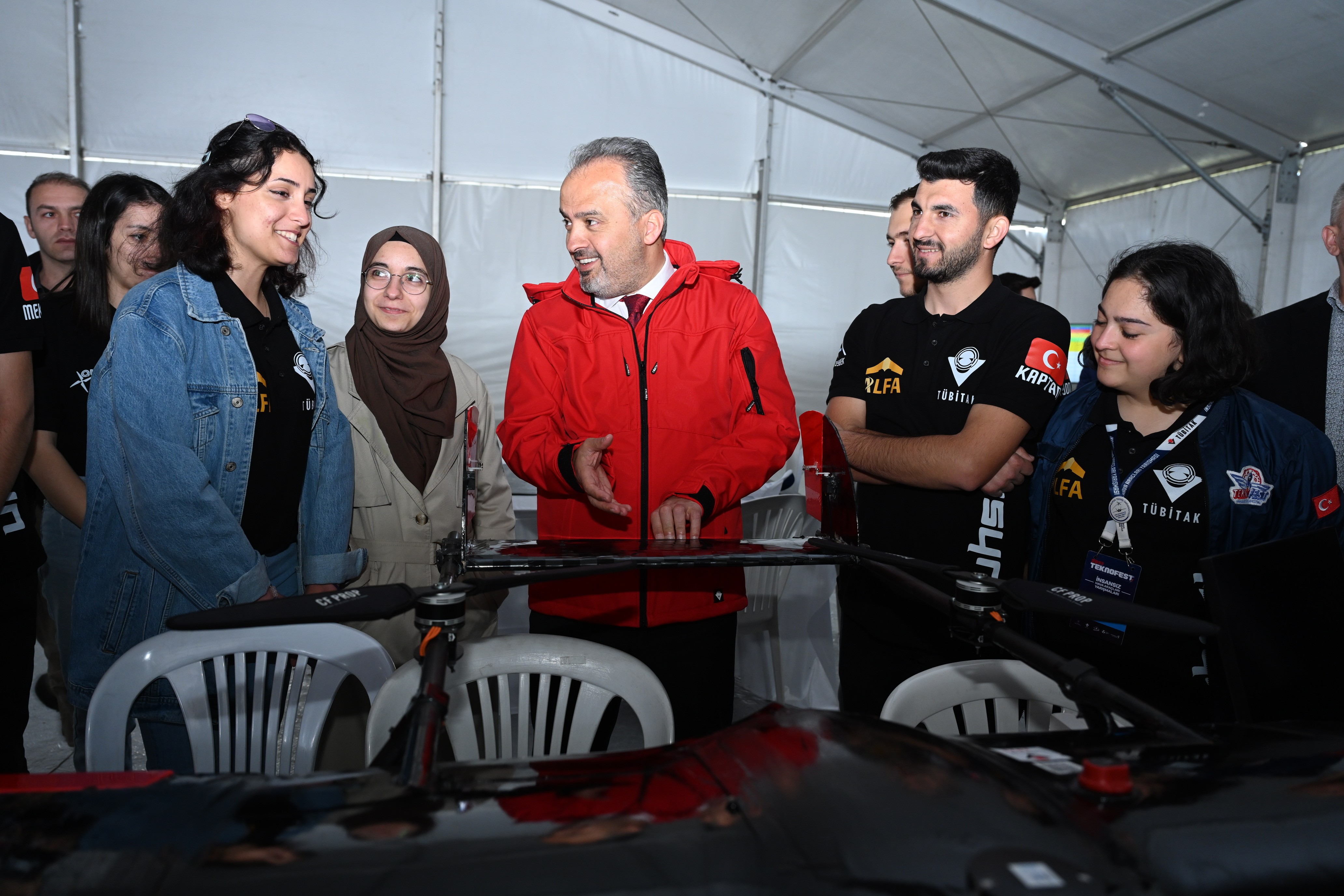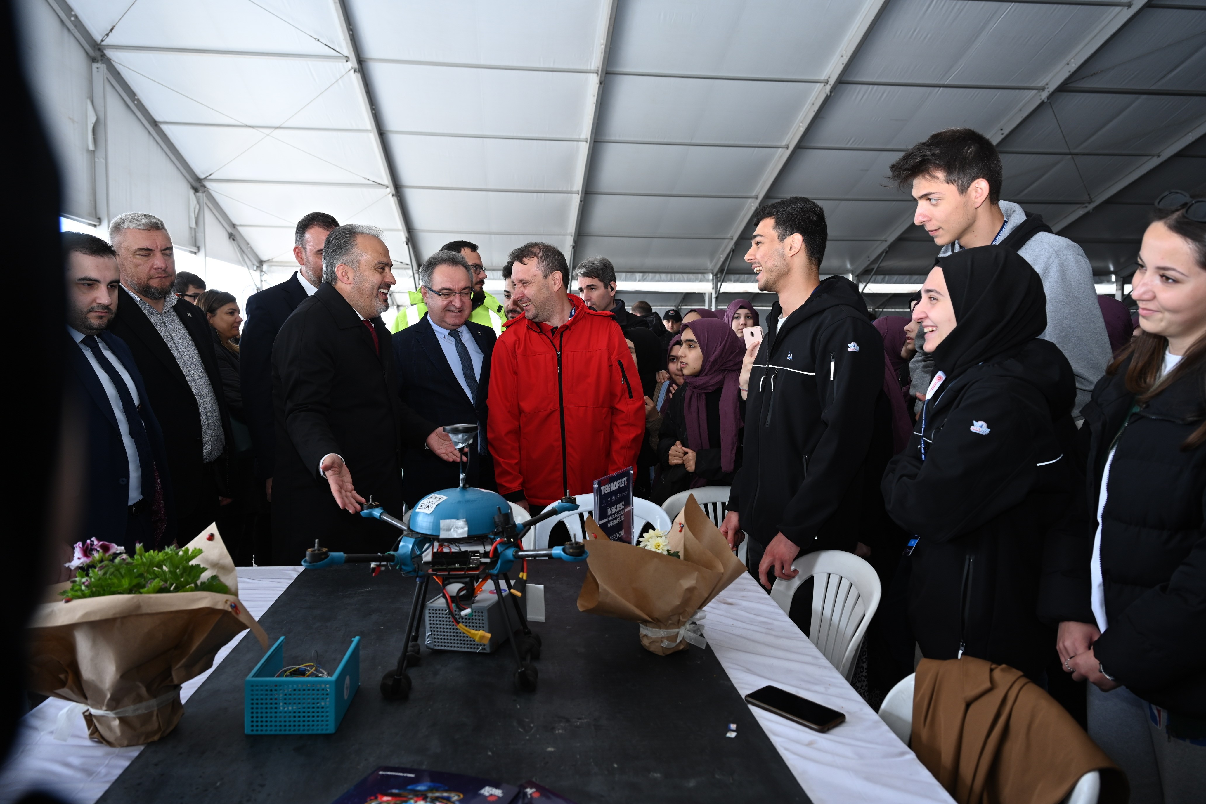 Bursa Büyükşehir Belediye Başkanı Alinur Aktaş, Yunuseli Havaalanında teknolojide yarışan gençleri atölyelerinde ziyaret etti. Çalışmaları hakkında gençlerden bilgi alan ve onlara çeşitli hediyeler veren Başkan Aktaş, “Milli teknoloji hamlesi kapsamında yapılan çalışmalar ile ülkemizde her alanda yerli ve milli üretim artıyor. İHA teknolojisinde ise ülkemiz, dünyadaki en başarılı birkaç ülkeden biri hâline geldi. Bu başarı, ülkemizin gururu olduğu kadar aynı zamanda bizlerin sorumluluğunu da arttırıyor. Bu yıl yarışmaya geçen yıla oranla yüzde 86 artışla 1228 takımın başvurması gençlerimizin de teknolojiye olan ilgisini gösteriyor. Tüm yarışmacılarımızı yürekten kutluyorum. Bursa Büyükşehir Belediyesi olarak bu tür etkinlikleri hep destekledik, desteklemeye de devam edeceğiz. Zira yaşadığımız çağı yakalamak için bilim temelli bir bakış açısı geliştirmemiz gerektiğini düşünüyorum. Geçmişimizden güç alıp geleceğimizi, çağın gereklerine göre şekillendirmeliyiz” diye konuştu.