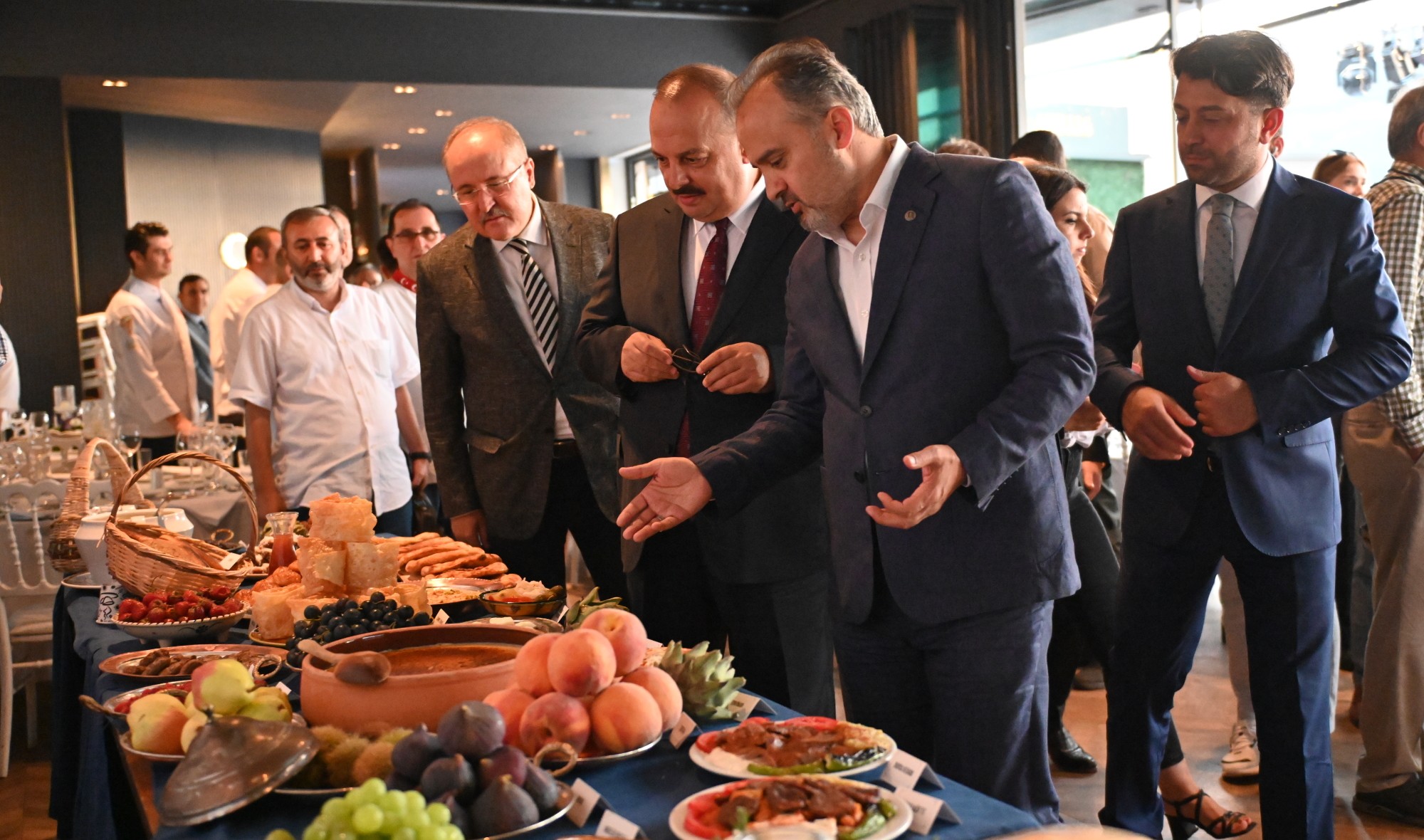 Bursa’da nüfus yapısının tarihin her döneminde göçler ve mübadelelerle şekillendiğini ifade eden Başkan Aktaş, ”Balkanlar, Orta Asya ve Anadolu’nun her bölgesinden gelen; Selanik - Girit mübadili, Boşnak, Arnavut, göçmen, muhacir, Pomak, Azeri, Laz, Ahıska, Abhaz, Çerkez, Gürcü mutfak kültürleri ile farklı lezzetleri aynı sofrada kültür mirasımızı zenginleştirmiştir. Kısacası Bursa; Türk mutfağına armağan ettiği birçok yemek ve tatlıyla tanınır. Bursa yemeklerinin namı Türkiye’nin dört bir yanına yayılmasının yanı sıra yurt dışında dünya mutfağında da yer almaktadır. Bursa kebabı, İnegöl köfte, Kemalpaşa tatlısı, pideli köfte, kuzu tandır, cevizli lokum, tahinli pide, cennet künkü, Bağdat hurma tatlısı ve kestane şekeri Bursa ile anılan lezzetlerin başında gelir. Kısacası Bursa’da iklim ve coğrafyanın tarıma elverişli olması, burada her tür sebze ve meyve çeşidinin yetişmesine olanak sağlamıştır. Bu da Bursa mutfak kültürünün zenginleşmesinin temel sebeplerindendir” diye konuştu.