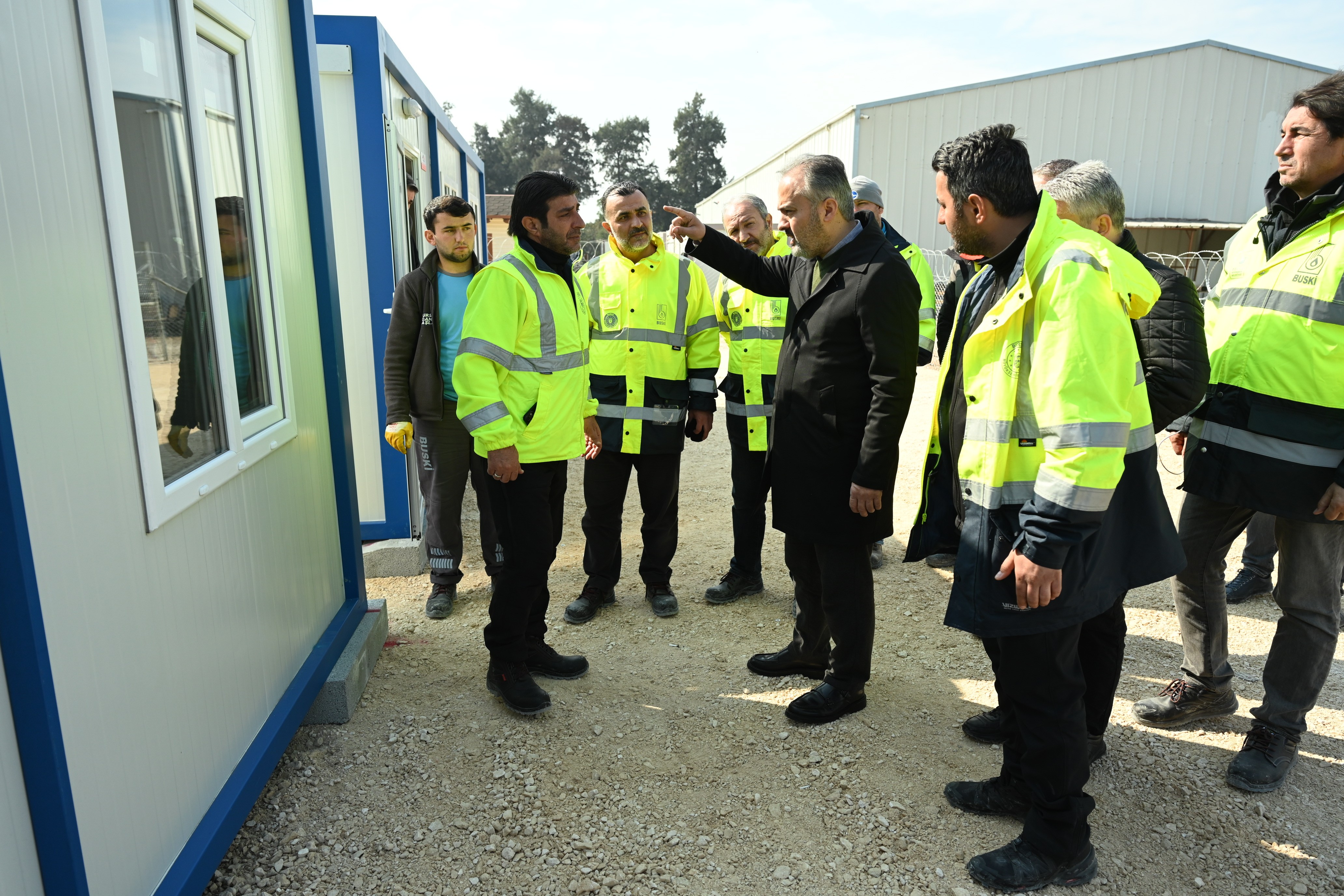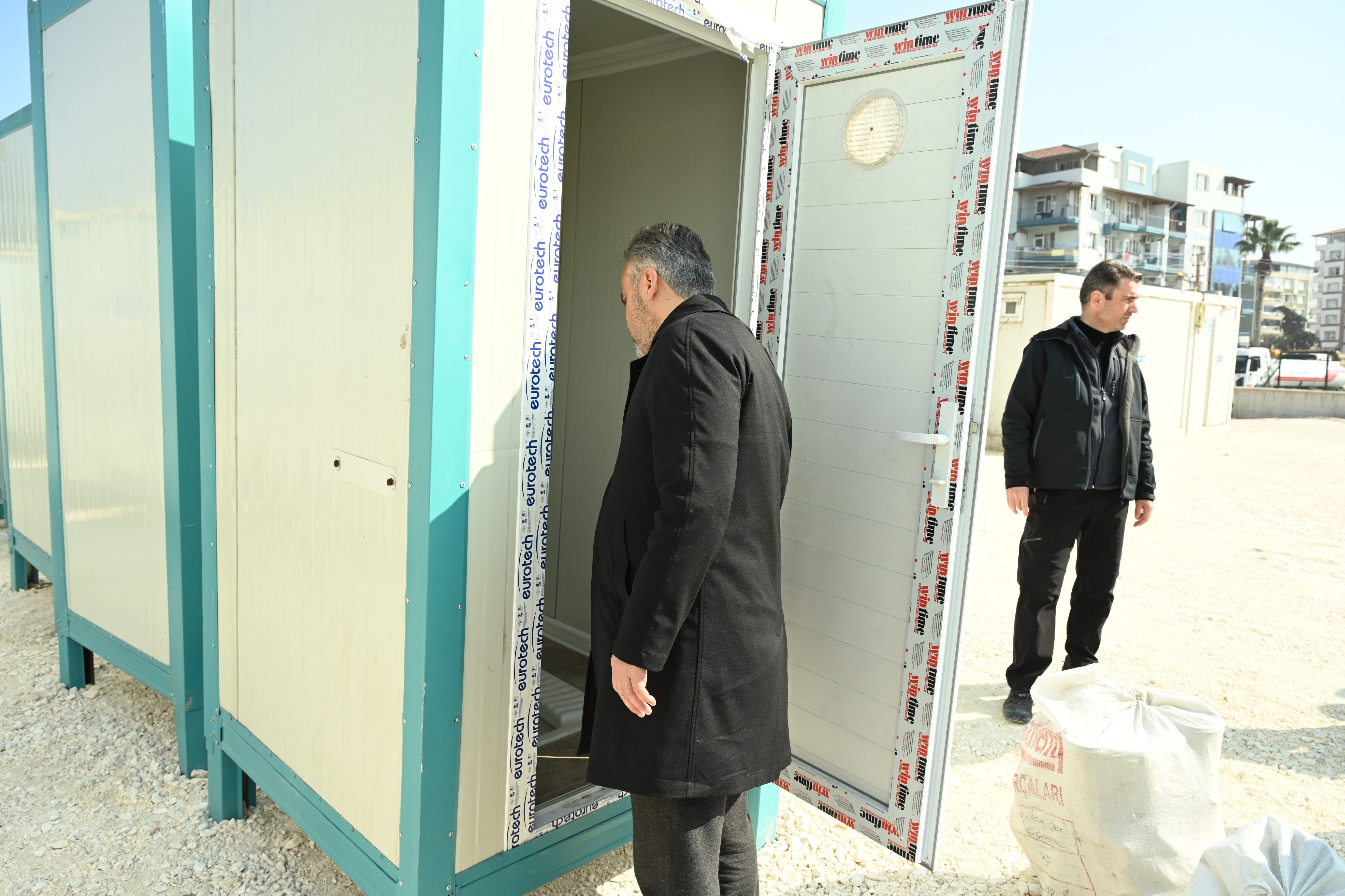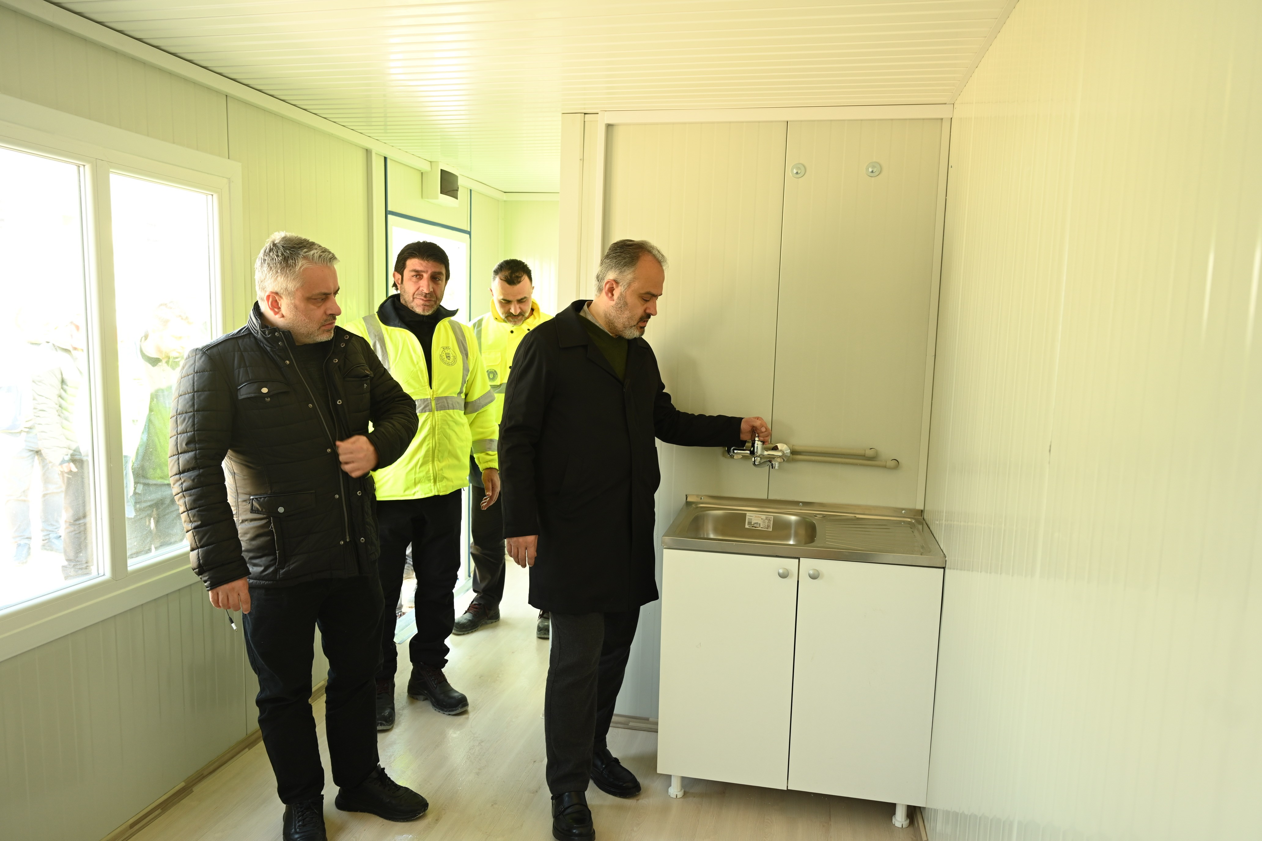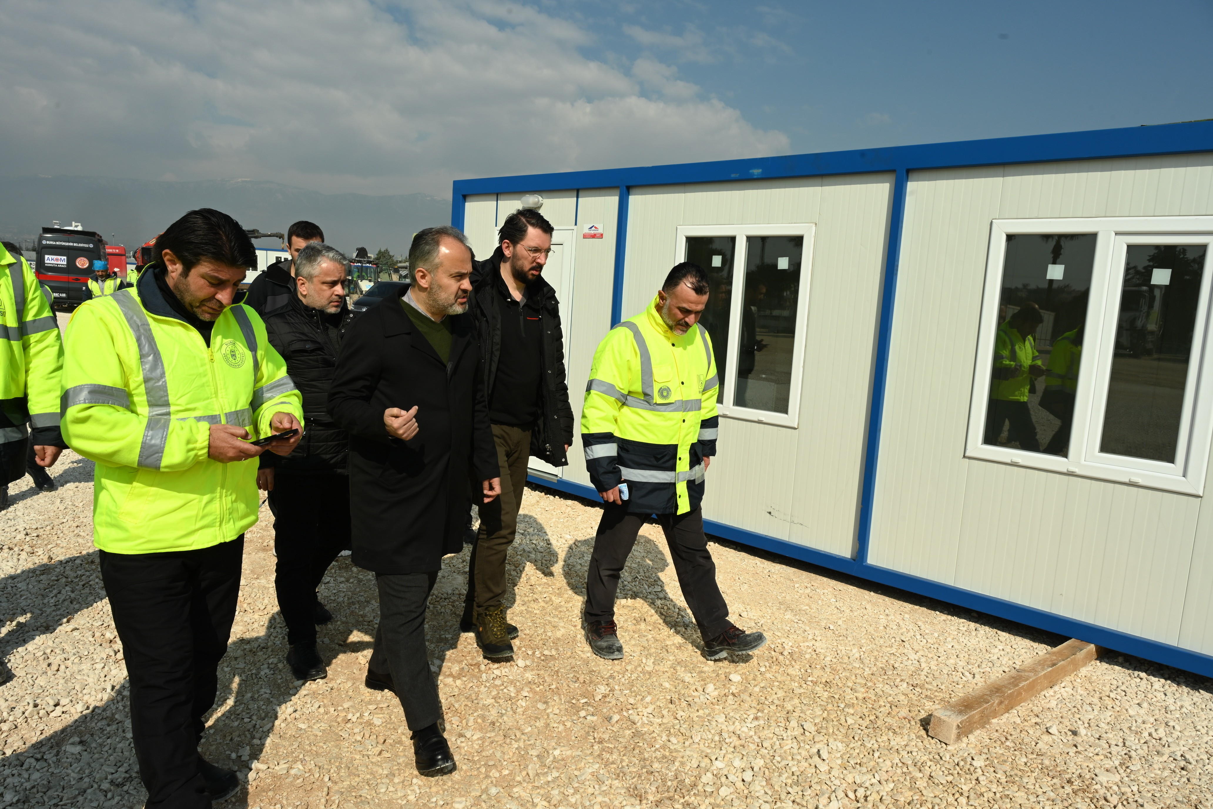 Depremin en yıkıcı etkilerinden birinin yaşandığı Hatay’daki görevlerinden biri de konteyner kentler kurulumu olan Bursa Büyükşehir Belediyesi, şehre ulaşan ilk konteynerlerin montajına başladı. Montaj çalışmalarını inceleyen Başkan Alinur Aktaş, “Hataylıların yüzünde biraz tebessüm olabilirsek, yaraları biraz sarabilirsek ne mutlu bize” dedi.