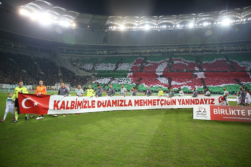 Seremoni sırasında Bursasporlu taraftarlar da tribünde gerçekleştirdikleri koreografi ile harekata desteklerini gösterdi.