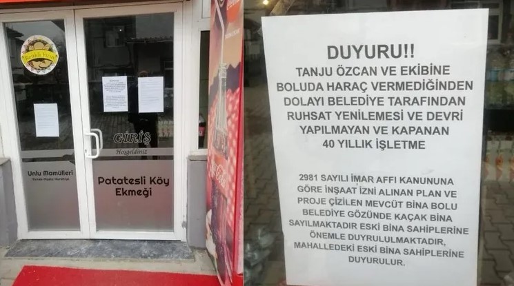 Bolu'da 40 yıldır fırıncılık yapan Hüseyin Hürremoğlu, CHP’li Bolu Belediyesi'ne haraç vermediği için 2022 yılında dükkânına mühür vuruldu. Kaçak yapı bahanesiyle dükkanı mühürlenen Hürremoğlu, 4 yıllık mücadelesinin sonucunda binanın kaçak olmadığını kanıtladı. Hürremoğlu, "Belediyeye haraç vermediğim için belgeler eksik diyerek kaçak fırın yalanıyla dükkanımızı mühürlediler. 4 yıl geçti belgeler bulundu diyorlar. Maddi ve manevi zararımız var" ifadelerini kullandı.