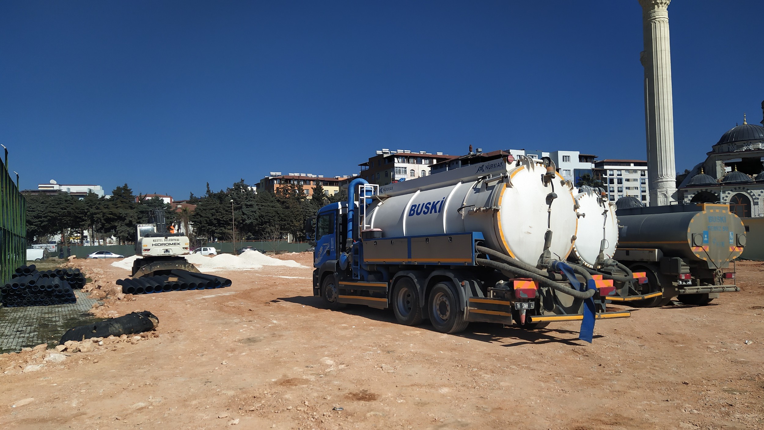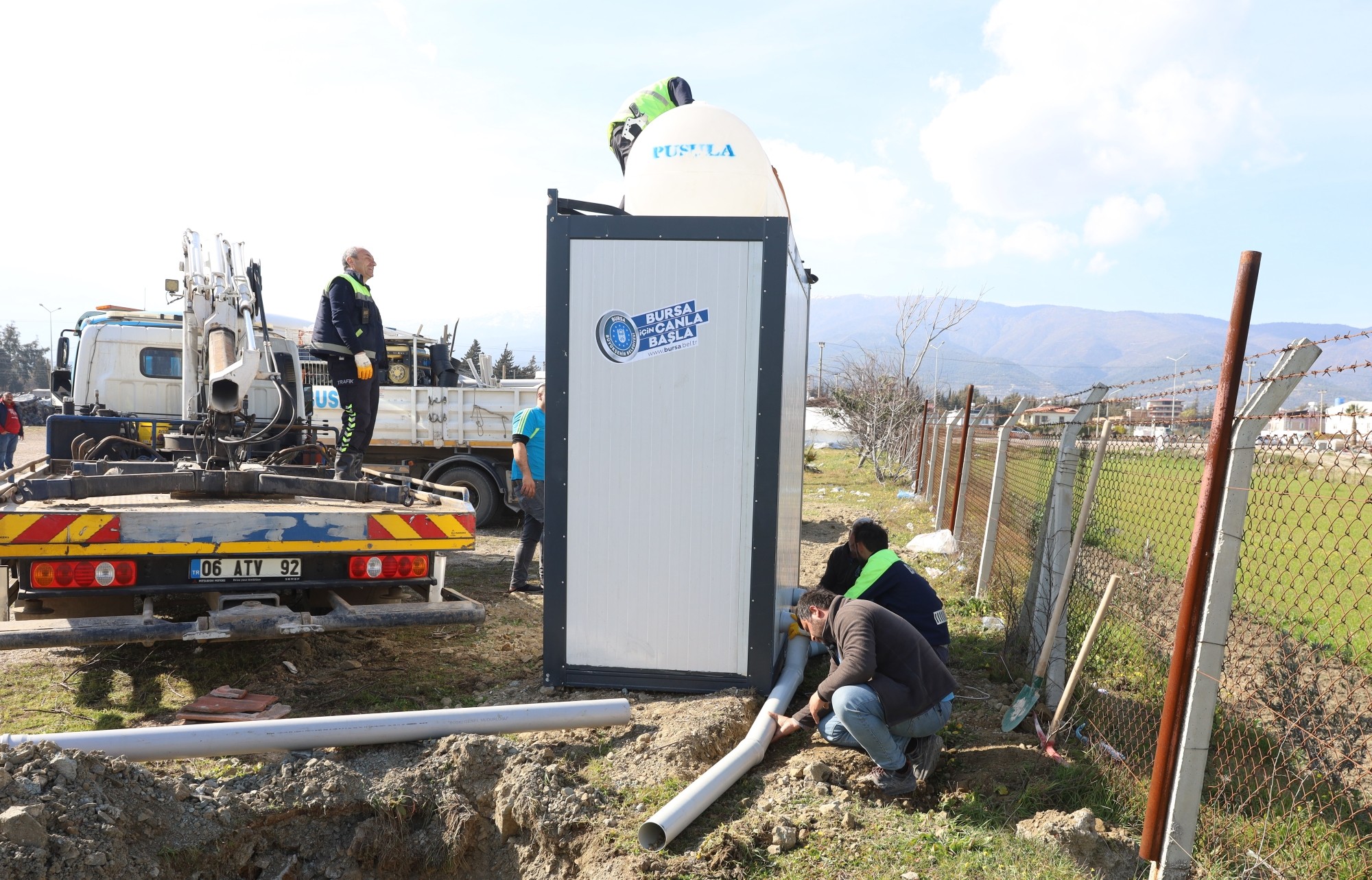 Bursa’nın sağlıklı bir altyapıya kavuşması için gece gündüz demeden çalışan Büyükşehir Belediyesi BUSKİ Genel Müdürlüğü, depremin yaralarını sarmak için Hatay’da da yoğun mesai harcıyor. Bir taraftan Büyükşehir Belediyesi’nce kurulacak konteyner kentlerin altyapısını hazırlayan BUSKİ, diğer taraftan kentin en büyük ihtiyacı olan tuvalet konusuna seyyar tuvaletlerle çözüm üretiyor.