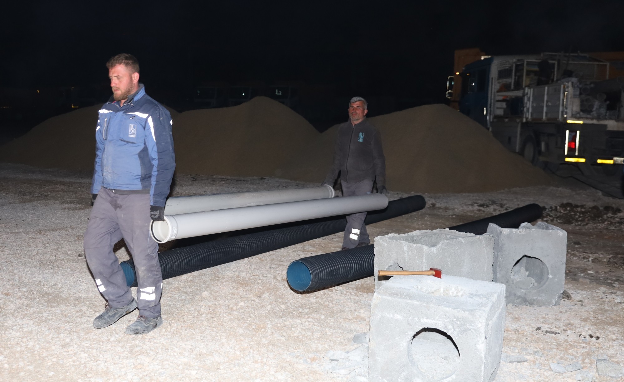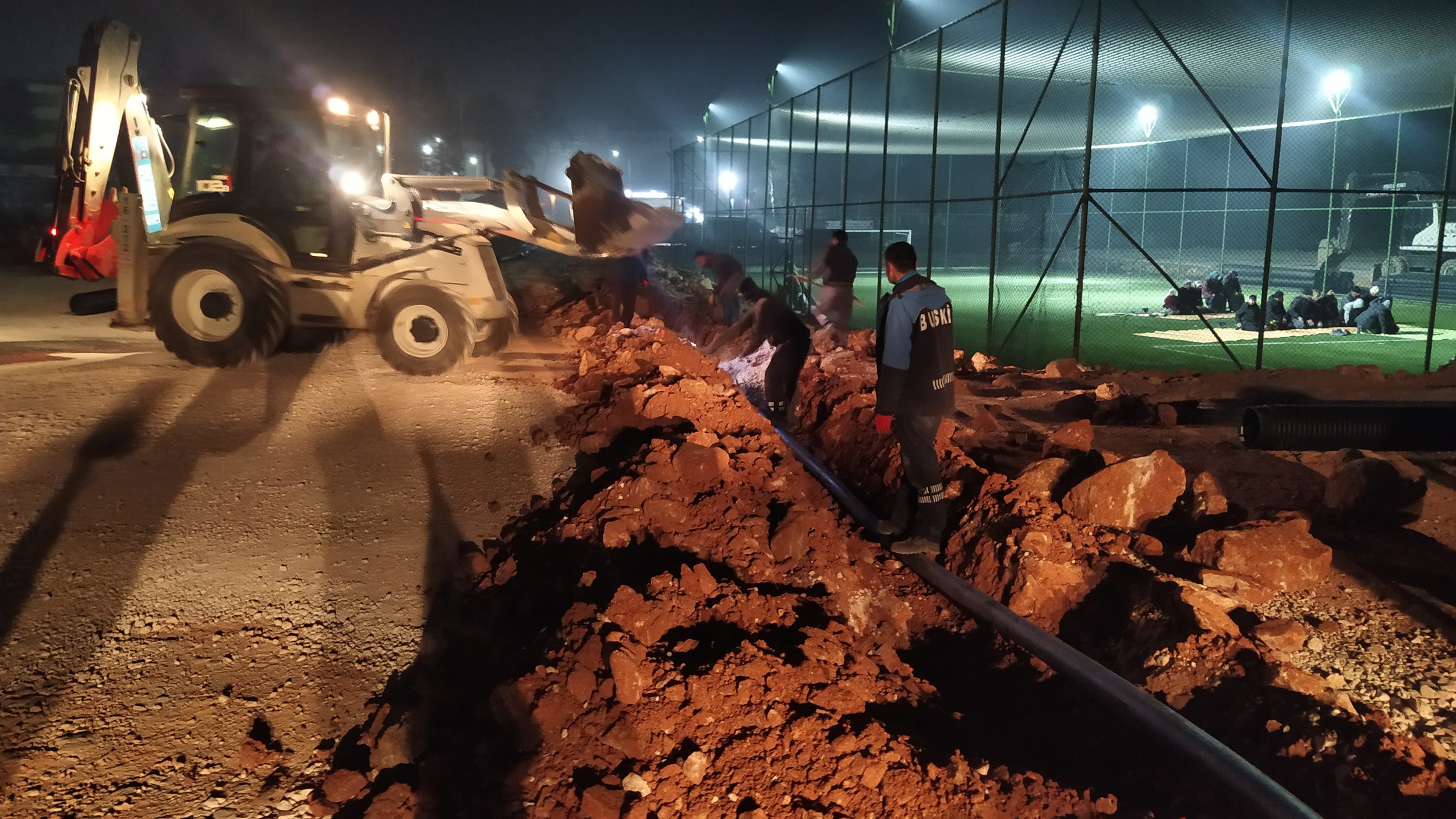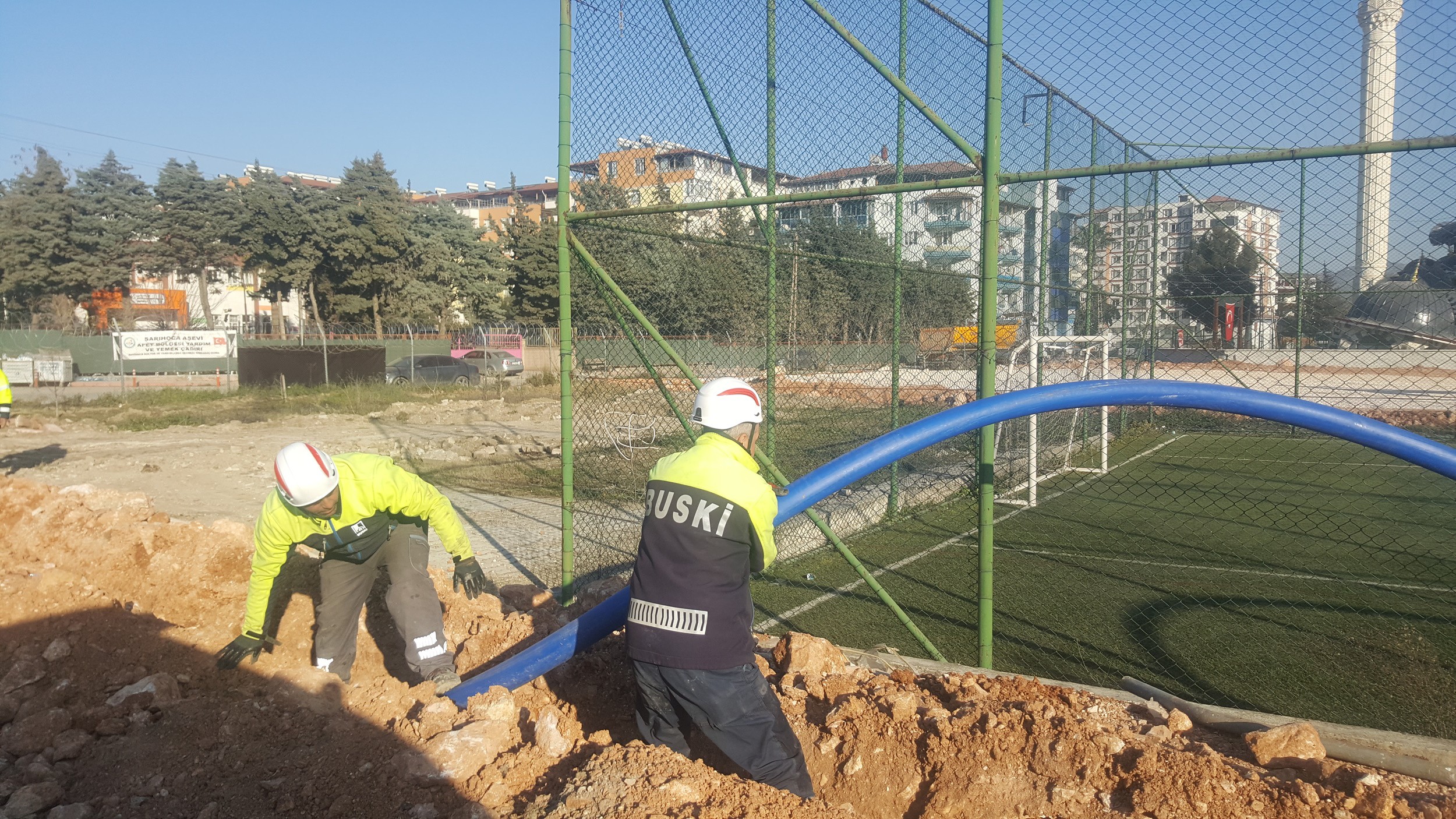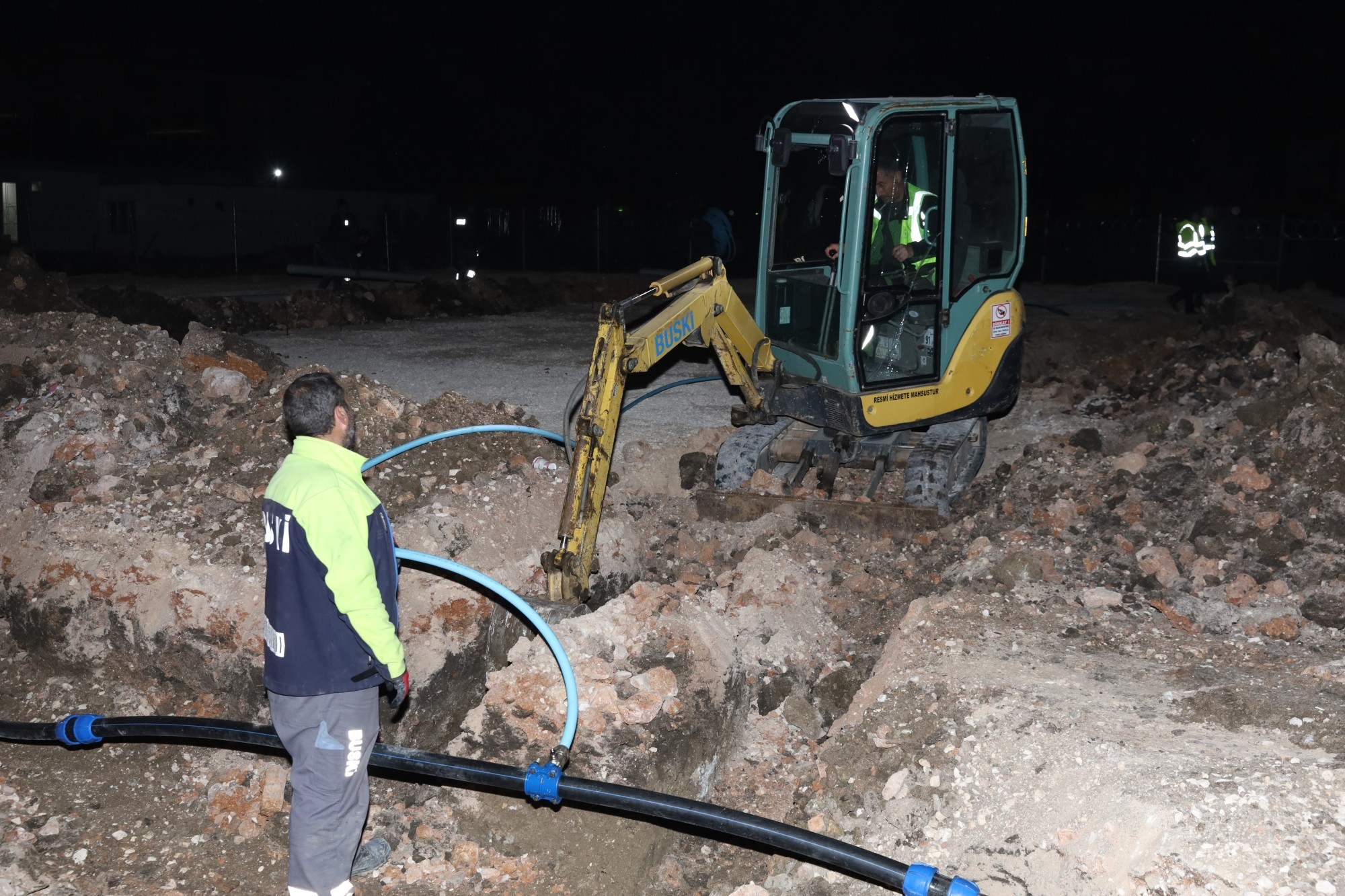 Hatay merkezde önceliği ‘Büyükşehir Belediyesi tarafından kurulacak’ konteyner kentlerin altyapısını hazırlamaya veren BUSKİ, toplam 3 bölgede 2 bin konteynerin yer alacağı 110 bin metrekare alanın içme suyu ve kanalizasyon hat bağlantılarını gerçekleştiriyor. Bugüne kadar 50 adet tuvalet ve duş için su ve kanal bağlantısını gerçekleştiren BUSKİ, seyyar tuvaletlere tankerlerle düzenli olarak su takviyesi yapıyor. İhtiyaç duyulan bölgelere seyyar tuvaletler kuran BUSKİ ekipleri, özellikle konteyner kentlerdeki altyapıyı bir önce hazırlamak için gece gündüz demeden yoğun çalışma sergiliyor.