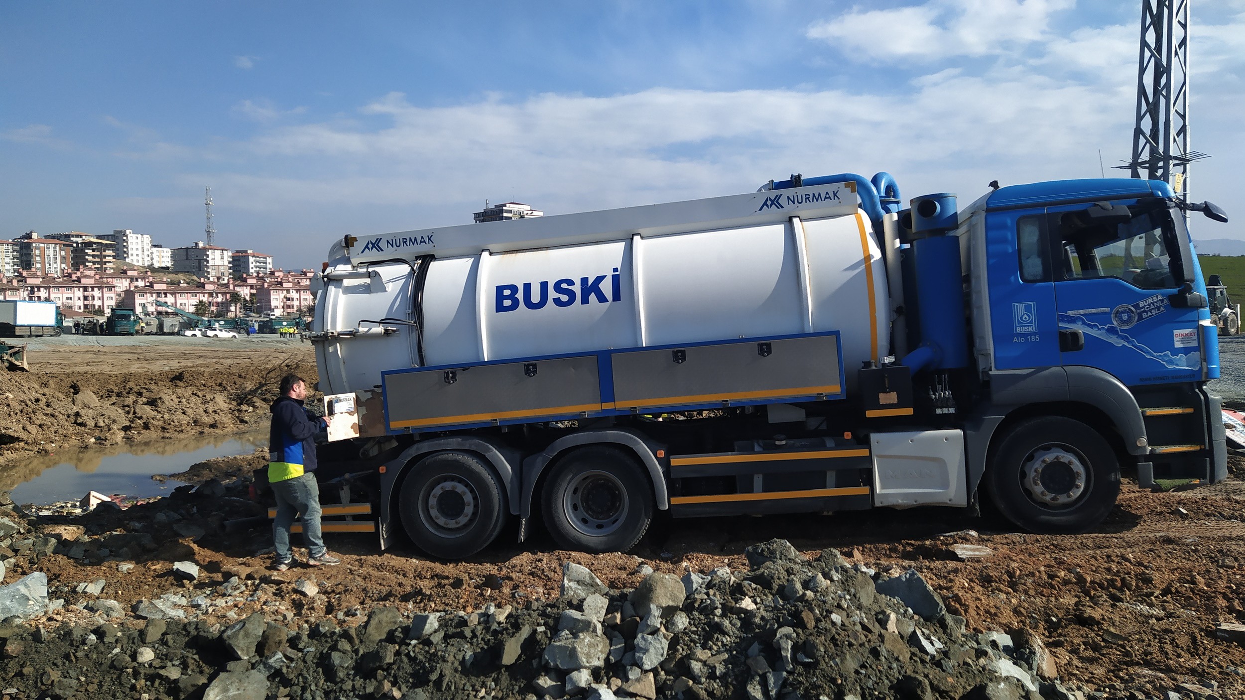 Kahramanmaraş’ta da depremin ilk gününden itibaren hummalı bir çalışma sergileyen BUSKİ ekipleri, geçici konaklama alanında 258 adet içme suyu bağlantısı yaptı. İçme suyu arızalarına müdahale eden BUSKİ ekipleri, ihtiyaç duyulan bölgelere 36 tanker su takviyesi yaparken, vidanjörle 25 defa çekim gerçekleştirdi.