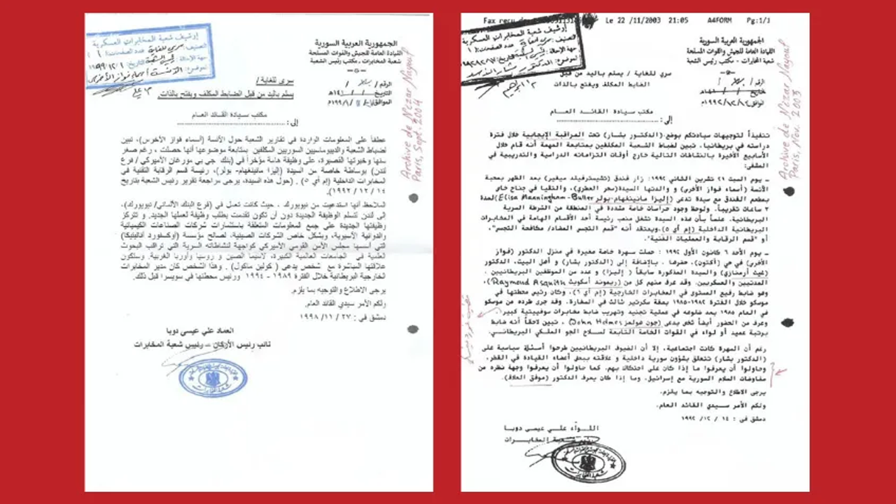 Suriyeli gazeteci Nizar Nayouf ve Watanserb tarafından ifşa edilen belgeler sonucu, Suriye'de devrilen Baas rejiminin son temsilcisi Beşşar Esed'in eşi Esma Esed'in İngiliz istihbarat teşkilatlarıyla bağlantılarının olduğunu ortaya çıktı.