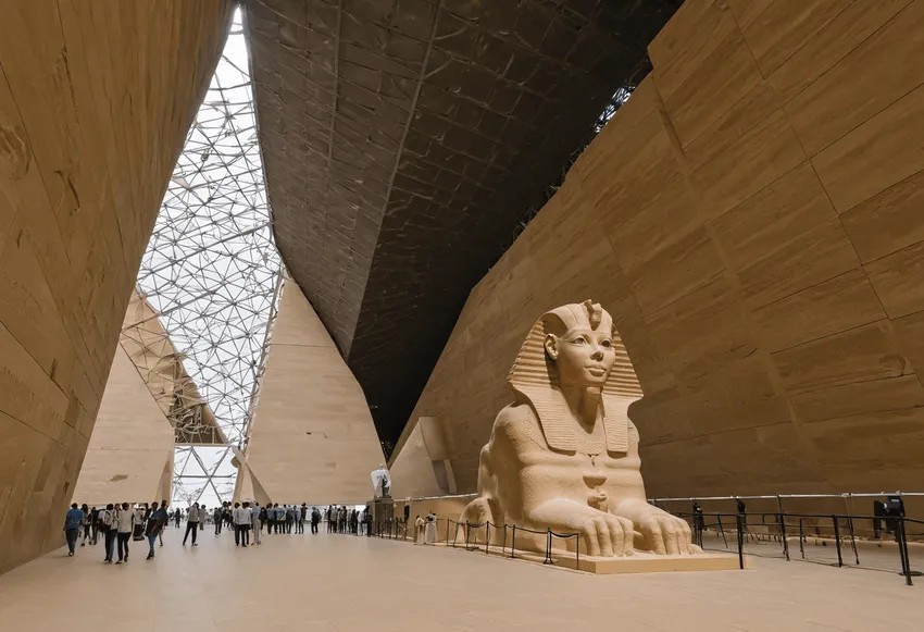Giza Piramitlerine yakınlığı nedeniyle üçgen formdaki mimarisiyle "dördüncü piramit" olarak da anılan Büyük Mısır Müzesi'nin öne çıkan özellikleri:
